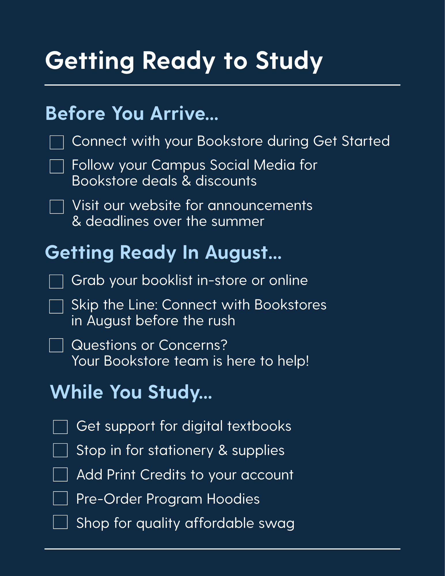 Click HERE to View Your Campus Bookstore Hours for Get Started